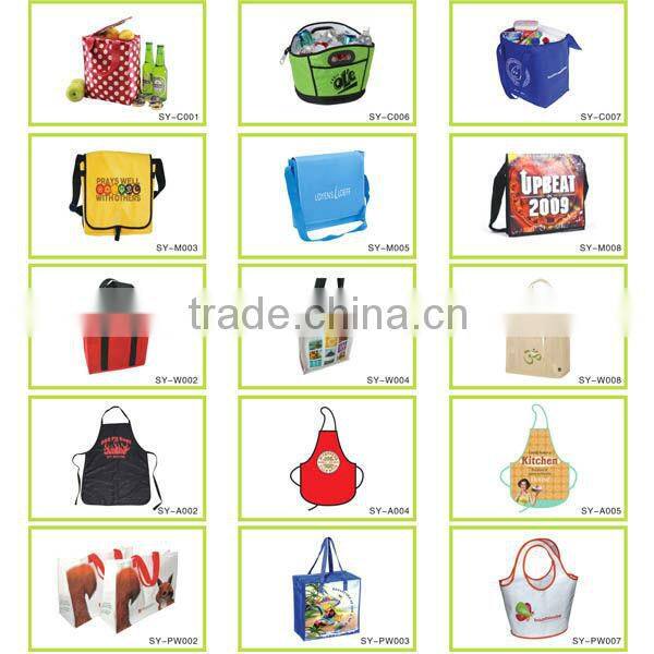 1. Material : 210D / 600D / nylon / polyester / pp wove fabric / cotton canvas / others 2. we accept customer fabric / customer color 3. Eco friendly & recycled |
