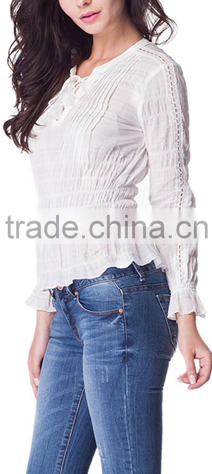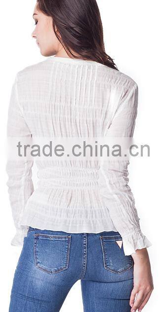 2016 Hot Sale Pleated White Autumn Ladies Blouse Designs