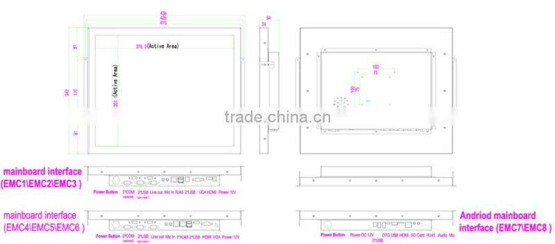 | Touch Monitor Dimensions | 415 x 343 x 54 mm | |