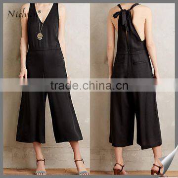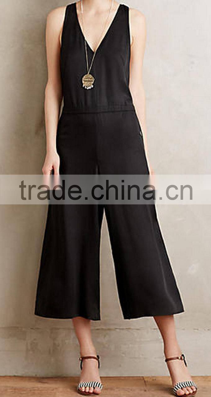 2016 Deep v Neck Sleeveless Design Black Fashion Jumpsuit