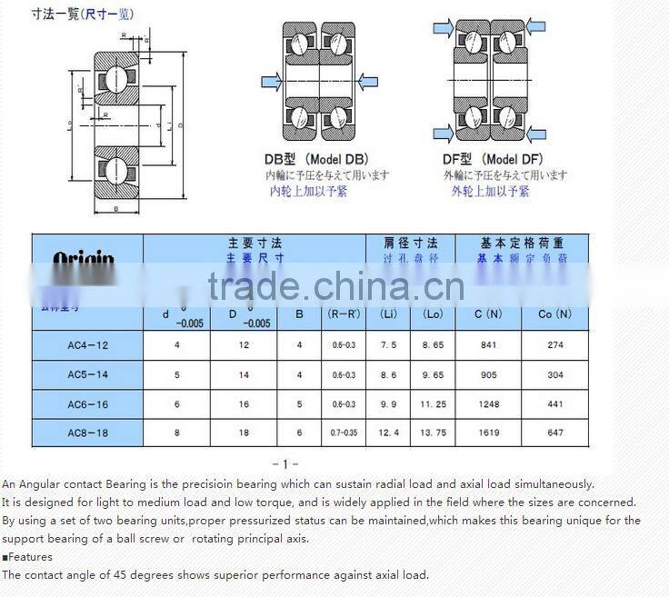 Origin AC4-12 bearing Angular Contact Bearing 4*12*4mm