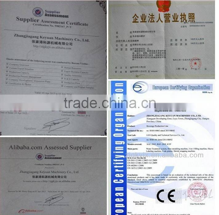 Zhangjiagang Keyuan Machinery Co., Ltd. is a professional engaged in a beverage packaging machinery and all kinds of water treatment equipment manufacturers, the company has more than 20 years of production and practice experience, and absorb domestic and foreign advanced technology, and constantly improve their products, the user enjoys a high reputation. At present, the production of a: 0.5-50T/H sets of water treatment equipment, 2000-25000 bottles / hour of mineral water, pure water, containing gas beverage complete filling, heat shrinkable film packaging molding production line; 50-1200 barrel five gallons of bottled production line; 2000-25000 bottles / hour vinegar, soy sauce, wine filling production line; 2000-25000 bottle / hour juice, tea, plant protein beverage complete sets of production line. Company to "honesty, sincerity, honesty, sincerity" as the spirit of enterprise; to "high-tech, high quality, high grade" lifeline; to scientific and technological innovation as the eternal business philosophy; to perfect after-sales service to meet customer demand, also have been proposed and implemented to develop in the direction of "multi varieties, high technology, large-scale, sets of" strategic. The company standard quality control system is the important guarantee for the products to win customers and occupy the market. The key parts of the product have established the data tracking and data analysis system, the main components are imported, improve the reliability of the product. The manufacturing quality has become the first working principle of every member of the company. Keyuan is willing to join hands with you, and make unremitting efforts for a better future, welcome to visit our company to guide. Company quality policy: customer demand and satisfaction, is our unremitting creation and pursuit!