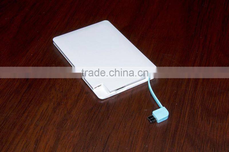Built in Cable Credit Card 2000mAh Power Bank