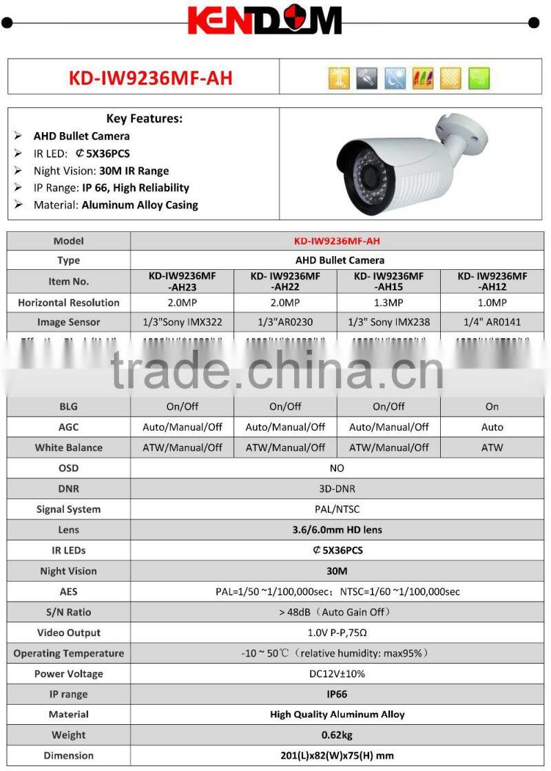 Kendom KD-IW9236MF-AH15 AHD Camera Factory Supply New Modle 1.3Megapixel Mini CCTV Security Support 30M With SONY IMX 238