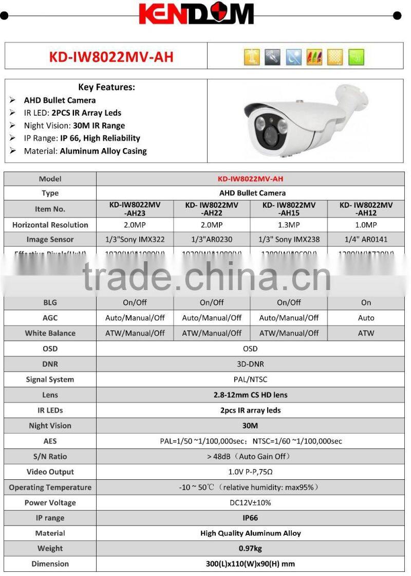 Kendom KD-IW8040MF-IP30 CE FCC ROHS IP CCTV Security 3.0 MP 4pcs IR Array Leds Camera Support 60M IR Range Bullet Outdoor