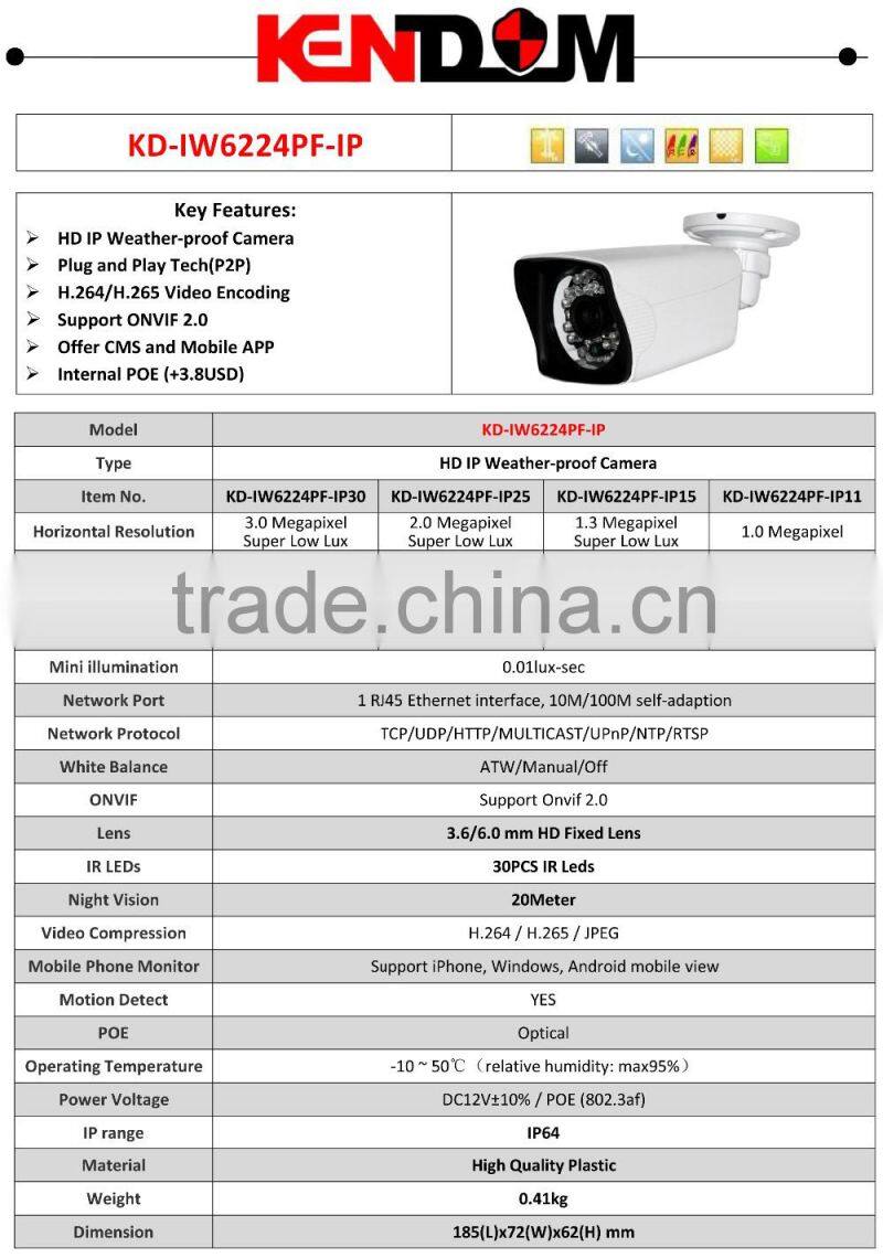 Kendom KD-IW7030MF-IP30 Best Selling Hot Chinese Outdoor Bullet IP CCTV Camera Digital ONVIF Network Security With P2P Surveilla