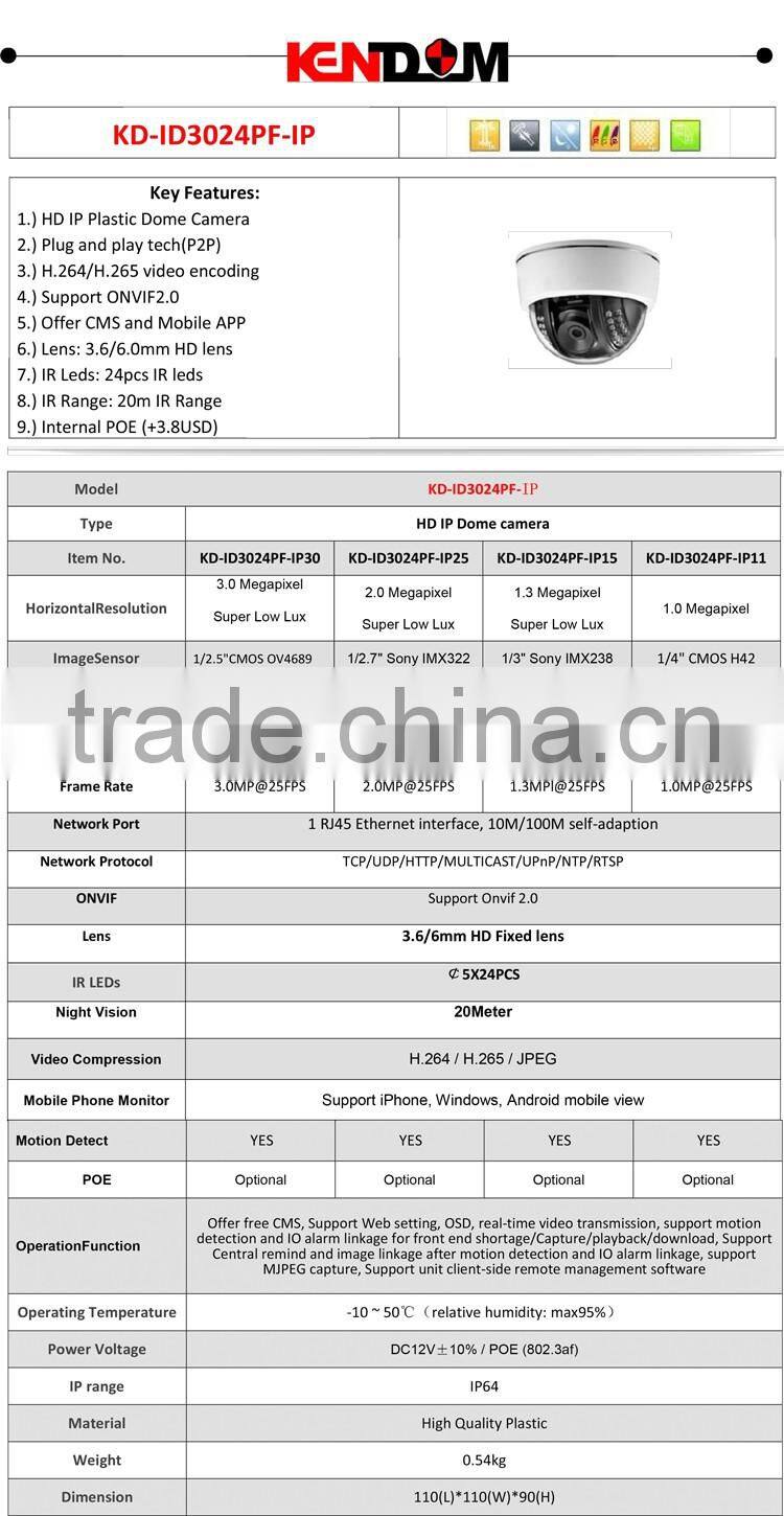 New Model KD-ID3024PV-IP 24pcs IR Leds Dome Security IP Dome 1080P With Plastic Cover Cheap Price