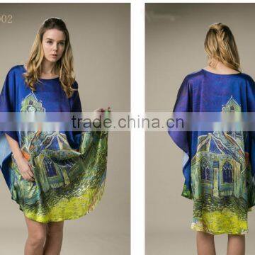 2016 Beach One Size 100%silk Women Batwing Kaftan Silk Dress