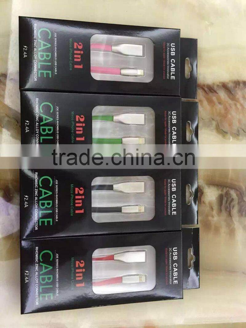 Rhombus Zinc Alloy Connector USB Cable 2 in 1 for IPhone and Andoird
