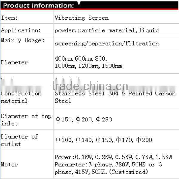 5.The vibro sifter is avaiable constructed of carbon steel, stainless steel AISI 304 or stainless steel AISI 316.