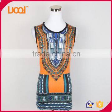 Hot sales digital printing fashion women dashiki sleeveless tops