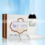 Bio micro current technology is use the electricity theory of the same polar ion reject, opposed polar ion attract. When apply active essence/lotion/cream with positive ion, use the MC SPA positive polar to penetrate the essence/lotion/cream into deep skin through sweat glands/ pores, cells inter-place. And use direct electricity enhance skin absorb, to beautify skin. The micro current adapted is low and safe to human body, when direct electricity come across something contains acid and salt liquor, chemical reaction happens. The same way, when direct electricity go through human body chemical reaction happens. MC SPA use micro current technology to penetrate essence/lotion/cream, and leading out impurity from deep skin.