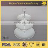 White Ceramic 3 Layers Round Serving Platters With Metal Rack