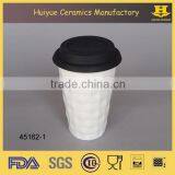 Insulated Double Wall Embossed Ceramic Travel Mug With Silicone Lid