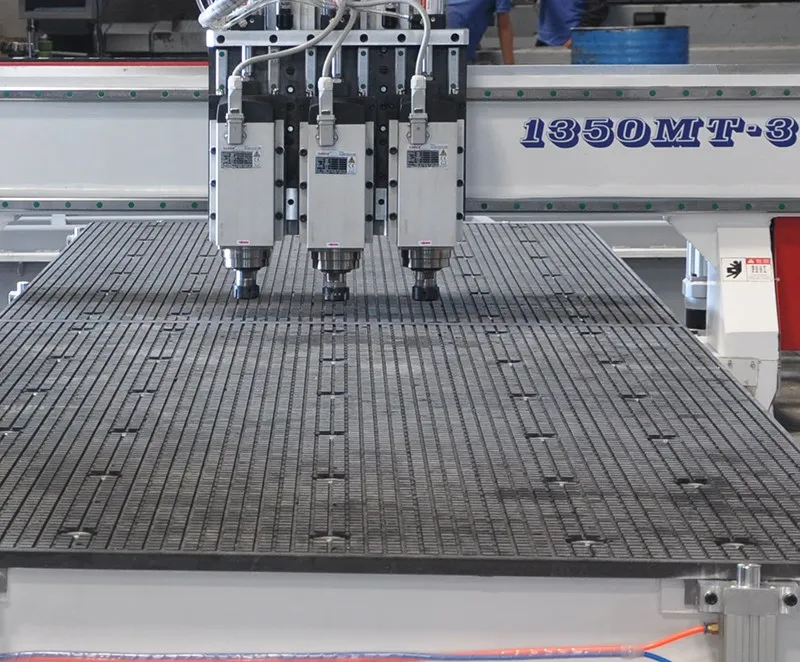 FC- 1350MT-3 is the double station cnc router with 3 spindles for cutting. It can provide drilling, grooving, cutting, milling functions.