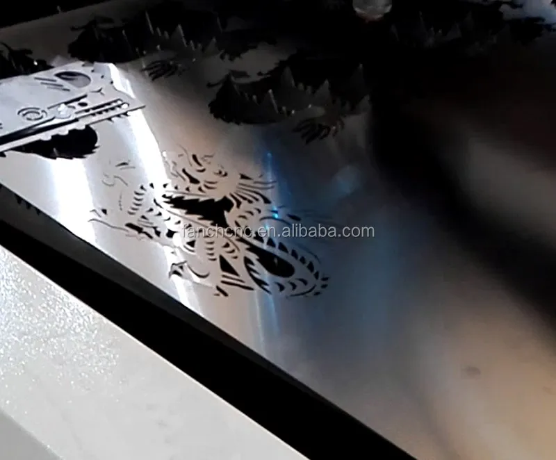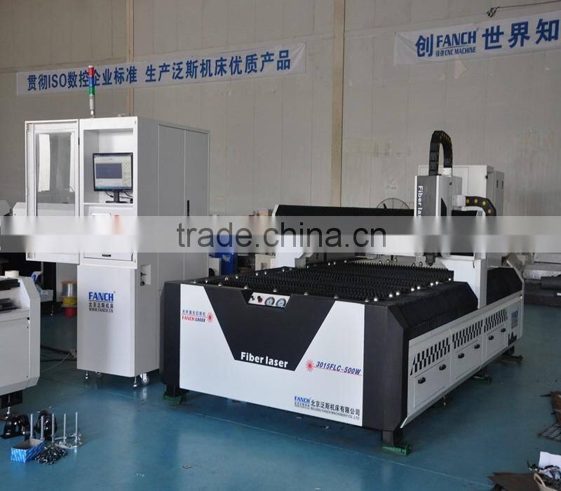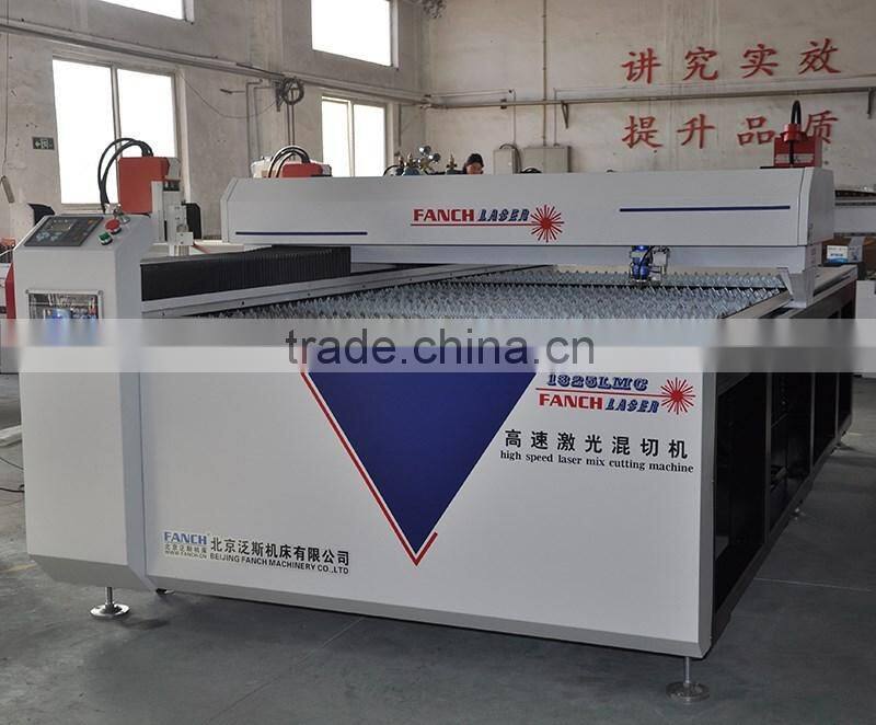 FC1325-300W fiber laser cutting machine adopts domestic 300W CW fiber laser, au3tech laser cutting head and Chengdu Leetro control system, combined with the company's own R & D gantry type CNC machine structure, whole machine bed high strength welding, machine frame quenching by 600 degrees temperature to ensure that no deformation, racks and aluminum dual-platform table, the whole machine weight is 1.5 tons, gantry with overall casting, precision machining, good rigidity and stability. Rack and guide rails adopts high precision level, also equipped with dust system, lubrication system and tow feeding device system. This type machine is with high precision, high speed. It can cut max. 3mm carbon steel and max. 2mm stainless steel, with high quality, high brightness, high conversion rate, maintenance-free, reliable, low running costs and so many other advantages.