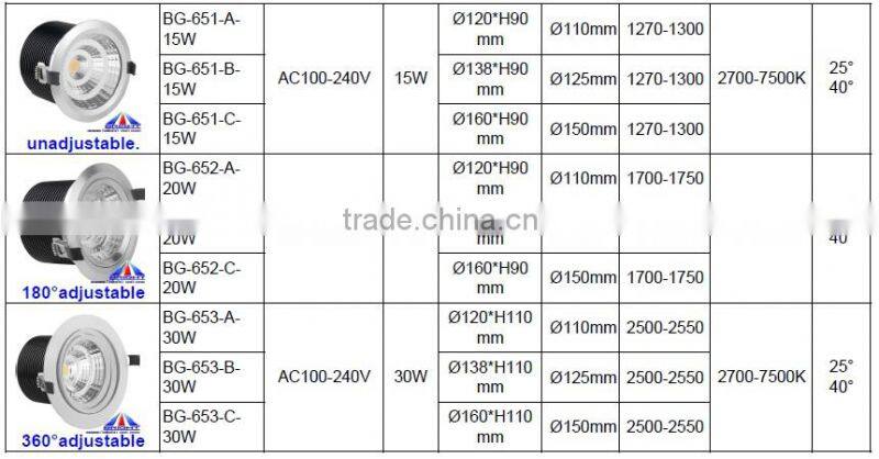 China Supplier 15W Adjustable Led Cob Down Light, Smart Led Downlight