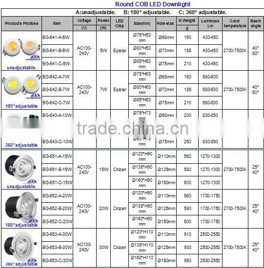 China Supplier 15W Adjustable Led Cob Down Light, Smart Led Downlight