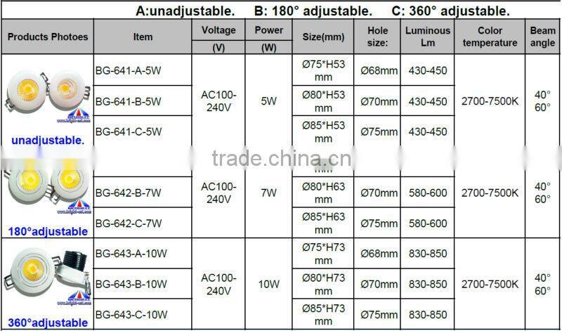 CE RoHS Marked Ceiling LED Downlights,IP50 180 Degree Adjustable COB Ceiling LED Downlight/Downlights