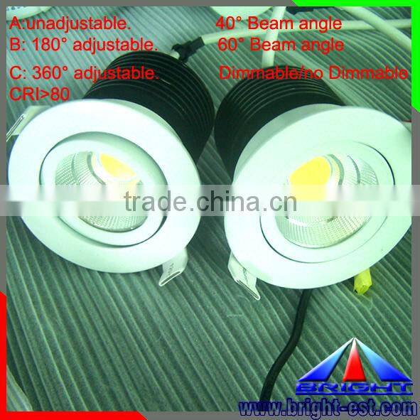CE RoHS Marked High Bright IP50 180 Degree Adjustable COB LED Downlight With 40 Degree Beam Angle
