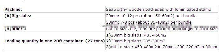 Well packed with fumigated wooden crates for tiles and coutertop,and bundles for slabs |