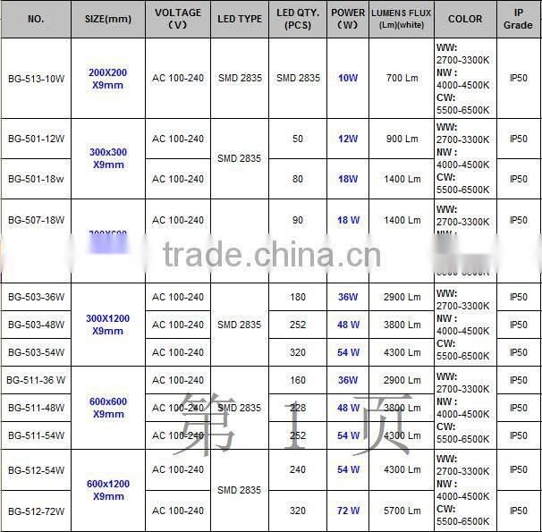 2015 China Smd Recessed Square Led Panel 10w 12w 18w 27w 36w 48w 54w Led Panel Light
