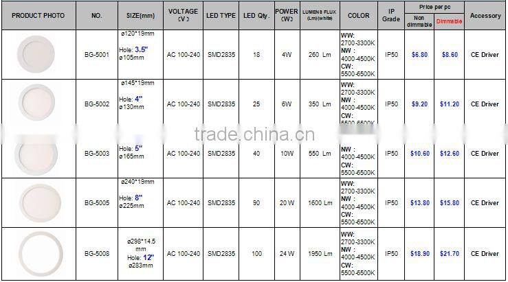 Factory Price 3.5" 4" 5" 8" 12" Flat LED Light Panel,SMD2835 LED Flat Panel,Strongest Bright Interactive LED Panel