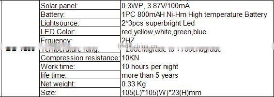 Parameters of Aluminum LED SOLAR Road Stud