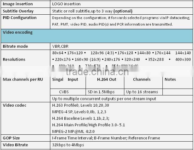 - SD MPEG4/H.264/MPEG-2 to any resolution encoding,Optional Upscale conversion