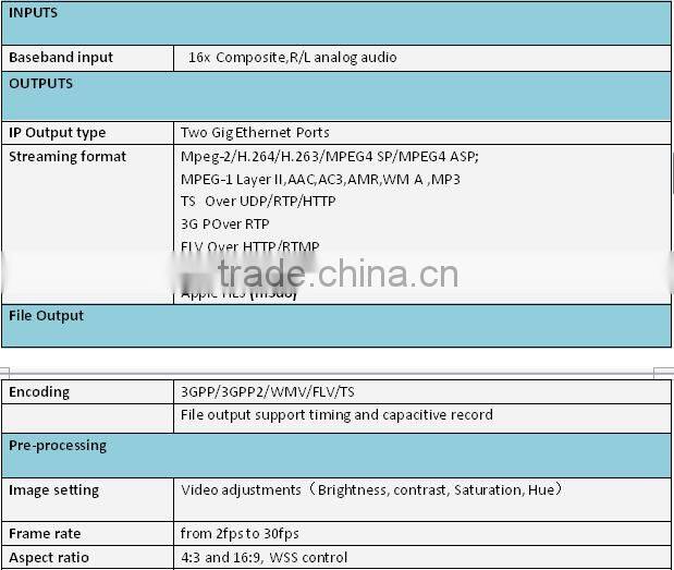 Telco,Broadcast multiscreen 16 RCA/IP H.264 Encoder