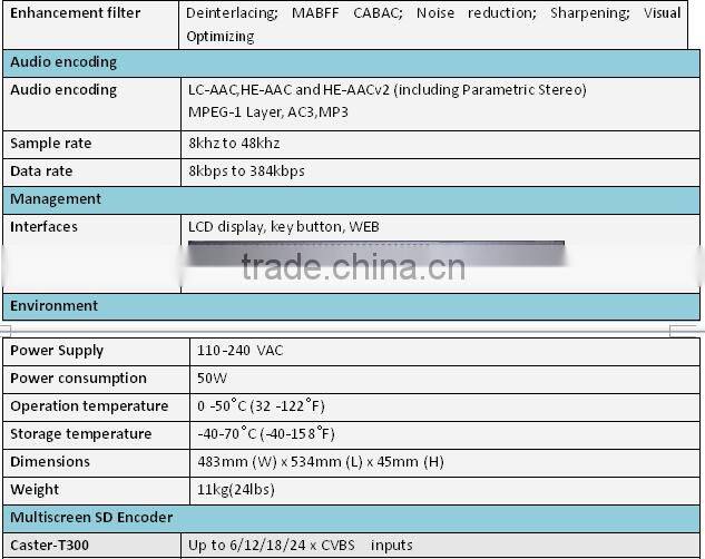 Caster-T300T can push /pull an MPEG-2,H.264,MPEG-4 encoding video streams deliver to various servers,