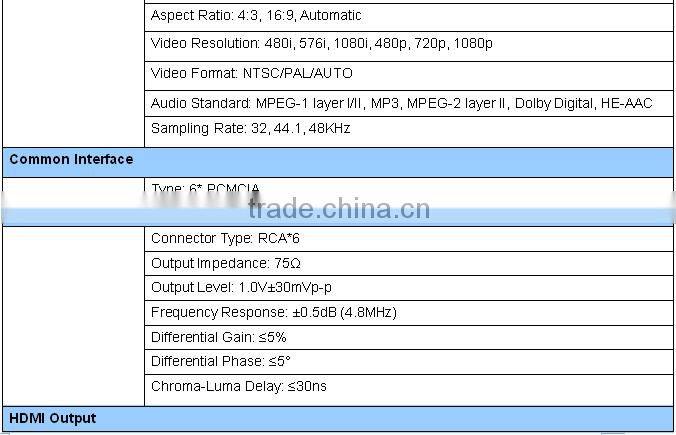 Home > Products > Digital Headend Equipments > 6Tuners Satellite Dvbs2 and Terriestral DVB-T2 IRD and Decoder Witch CI Slot Descramble to Hdmi and av