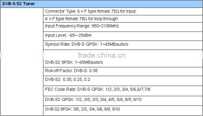 - Support 6* DVB-S/S2 or DVB-T Tuner inputs optional, and output with analog and digital signals independently