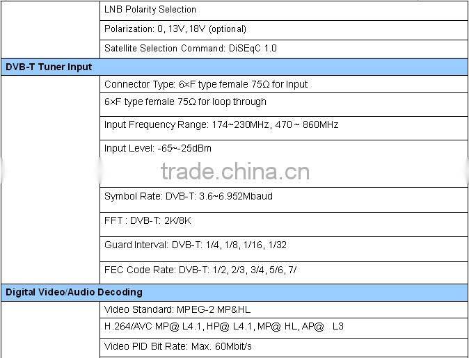 - Conform to decoding standard of MPEG-2 (MP@HL) and MPEG-4 AVC/H.264 in SD/HD