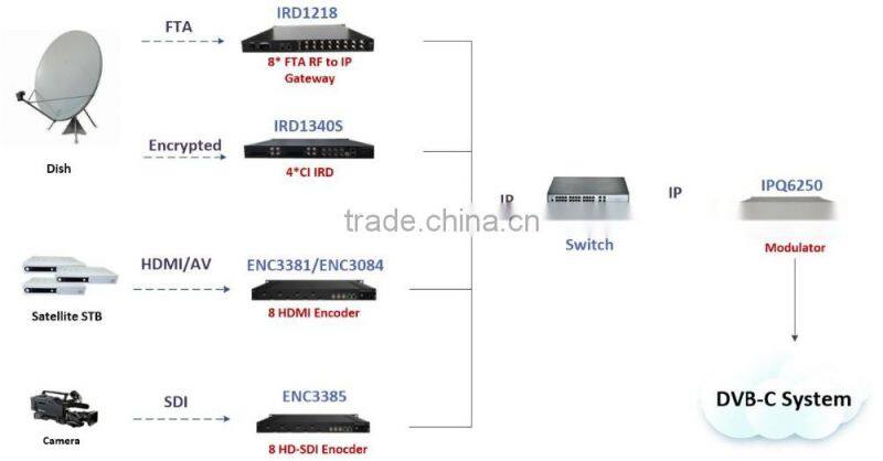 Nowadays, digital TV has gradually replaced the traditional analog TV, especially DVB-C cable TV is now very popular. According to different clients’ project requirements, we configure the following effective cost DVB-C headend solution:
