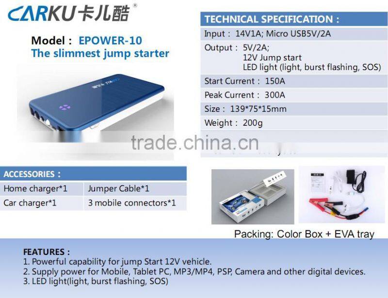 CARKU Hot Sale Mini Jump Starter/car Battery Charger With High Quality