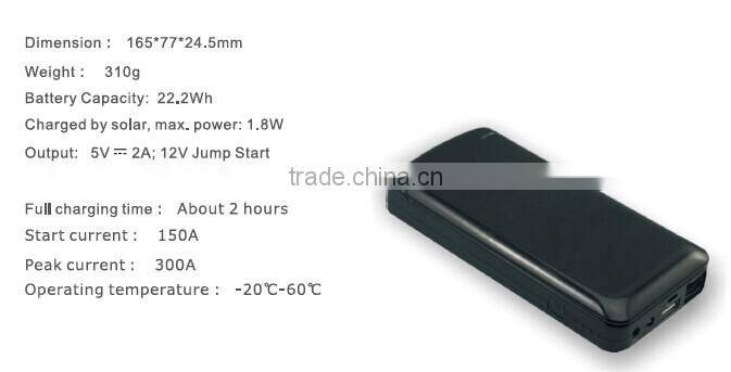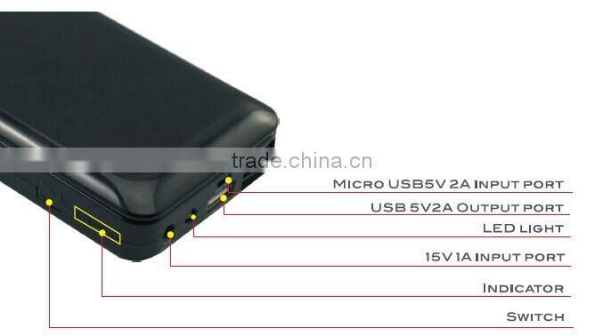 Output | 5V/2A ---mobile phone, tablet PC, other digital devices 12V car Jump Start |