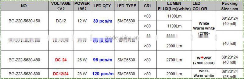 Product parameter of 5630/5730 led strip
