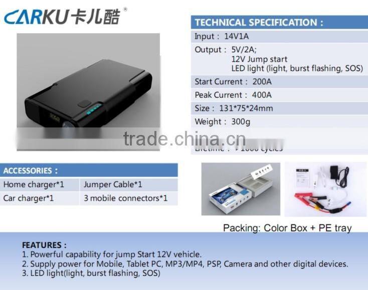2014 Newest Carku Battery Charger Can Start 12v Gasoline & Diesel Car