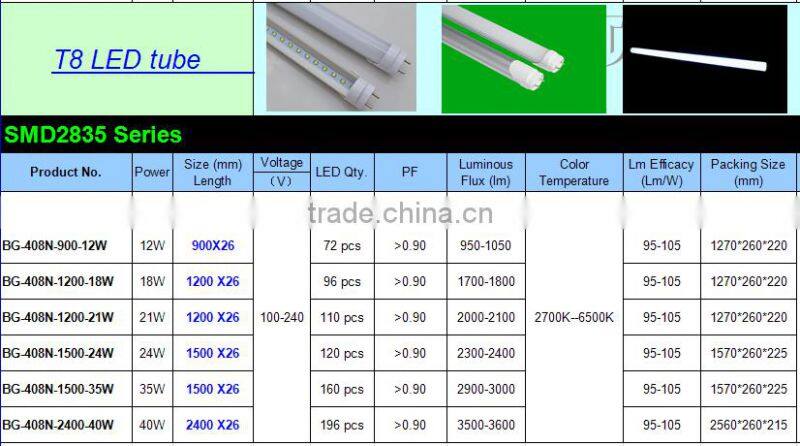 96pcs Smd2835 Led Tube Light 1200mm T8 Led Tube