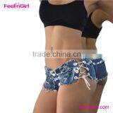 Sexy Hot Nightclub Womens Lace Up Jean Shorts