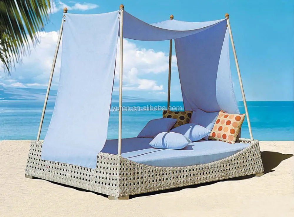 Outdoor Patio Furniture Sun Lounger Rattan Daybed Fit With CanopyNegotiableMOQ: 10 Pieces