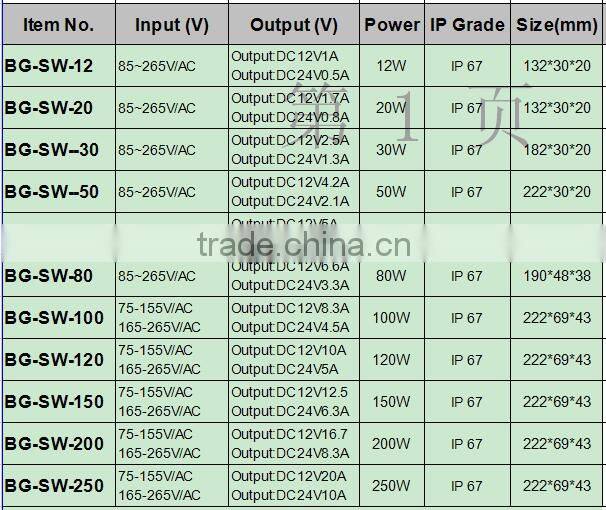 IP67 Waterproof Led Driver ac dc Power Supply, Led Light Power Adapter