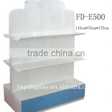 display rack is double sides,bottom is a storage cabinet,surface of wood is painting,can display bag,clothes,easy to install;1.Item Name:wooden display rack