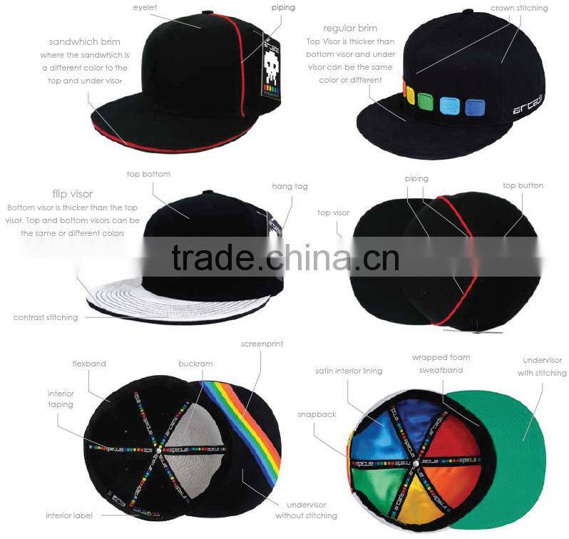 | 5 | Back Closure | Snapback, Brass, Plastic, Velcro Buckle or fitted | 7 hole plastic snap,Velcro,Brass/Metal buckle,adjustable tuck strap with slide closure,silver buckle and so on |