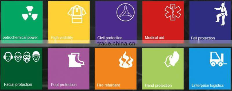 * As the member of CEN and one of the largest suppliers in the PPE, our products and services include almost all of the fields which need protective products;Such as petroleum chemical industry,electricity,communications,construction site, railway construction, fire fighting and rescue, and other industries, and for the army,police,nuclear power, navigation space and other departments to provide customized products and services.