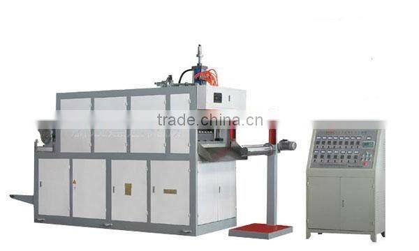 Plastic Thermoforming Machine is a kind of efficient automatic plastic thermoforming technical process. It can finish producing at one time through feeding, heating , stretching, forming and side-cutting, etc. It can produce such as PP,PE ,PS, and ABS, etc. This machine has wide used ,This machine is mainly used for producing disposable plastic vessels, such as teacup, milk cup, instant noodles bowl and other plastic products, etc..