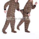 Wholesale Warm Plush Adult Footed Pajamas With Hood in Leopard Print