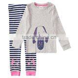 High Quality Cheap Kids Girls Long Sleeves Dog Printed Striped 100% Cotton Knit Jersey Sleep Pajama Set