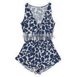 Wholesale Sexy Summer Short Bamboo Jersey Knit Lace Trimed Neckline Onesie Jumpsuit